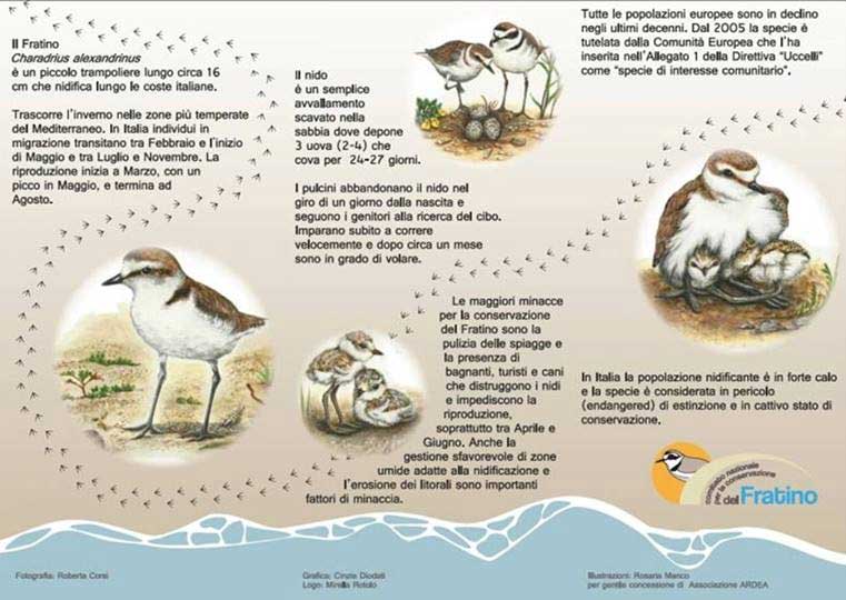 Il fratino (Charadrius alexandrinus) è un piccolo uccello che nidifica solo sulla spiaggia. La specie è in forte diminuzione in tutta l’Europa ed in molte regioni italiane rischia l’estinzione.