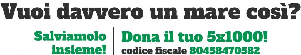 Salviamolo insieme! 8 milioni di tonnellate di rifiuti finiscono in mare ogni anno. L’88% dei casi, spesso mortali, di indigestioni e intrappolamenti di cui sono vittima gli animali marini è causato dai rifiuti di plastica. Quasi sempre sono oggetti usa e getta, usati per pochi minuti ma che rischiano di inquinare il mare per sempre. Non possiamo più nascondere la testa sotto la sabbia e tu, con una semplice firma, puoi fare molto: scegli di destinare a Legambiente il tuo 5 per mille e sostieni il lavoro di tantissimi volontari che liberano città e spiagge dai rifiuti abbandonati da chi non rispetta l’ambiente in cui viviamo.