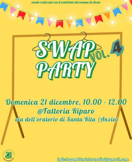 20 Gennaio 2026Senza categoriaadmin Domenica 21 dicembre SWAP PARTY: Lo swap party è un momento di scambio di vestiti, scarpe e accessori. Ma non solo: laboratorio di uncinetto, visione di docu-film, chiacchere e tante altre attività!
